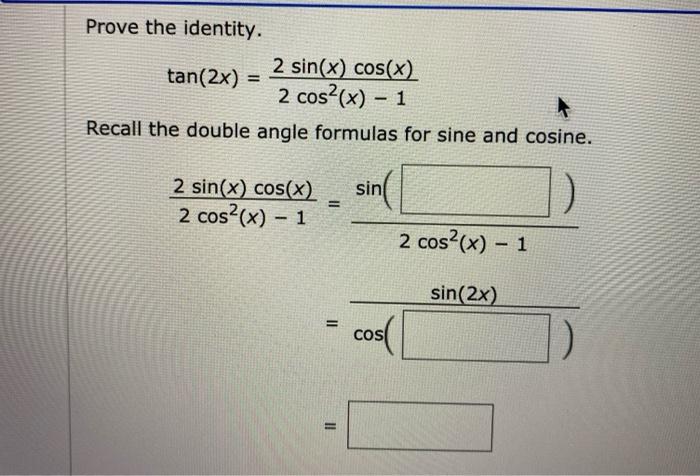 Prove The Identity 2 Sin X Cos X Tan 2x 2 Chegg Com